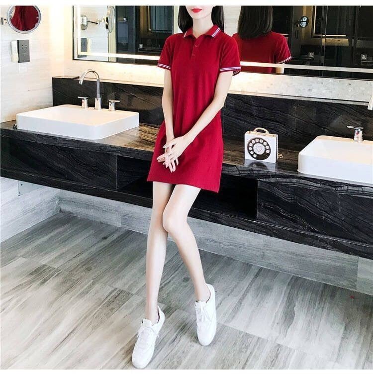2024夏季新款运动休闲短袖L Polo衫领长T连衣裙