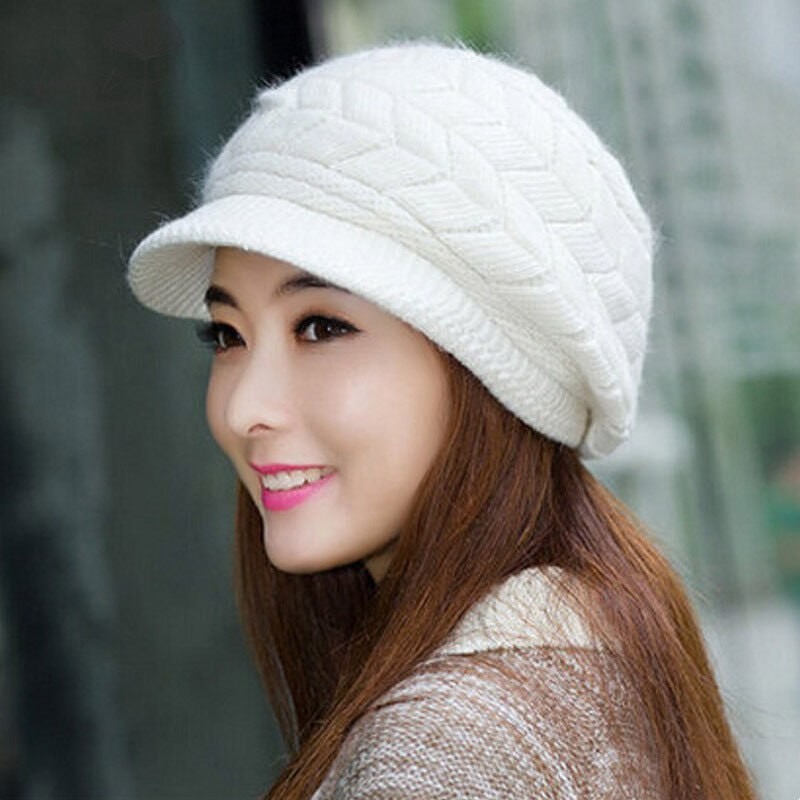 Amart时尚秋冬女式针织贝雷帽纯色保暖女士按扣帽子甜美女童休闲钩针帽